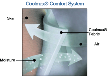These are also available in black! CoolMax questions... Energy Saving Tip! Because Coolmax® is so quick drying, you don't need to use your dryer. Great tip for travel too! Can Coolmax® be worn year-round? What are the advantages of Coolmax® vs. cotton? |