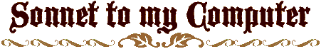 The Society for the Scientific Investigation of Carbon/Silicon Bonding presents: I admit it, I love my computer: We are currently studying the phenomena of Human/Computer Love, that is, the intense bonding that occurs between geek and machine. As part of this research, we present a number of creative works relating to this issue. It is our hope that these tributes will inspire others to publicly reveal their true feelings for electrical circuitry, and perhaps begin the road to understanding. |