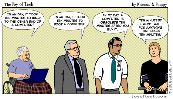 Welcome to the Joy of Tech... illustrated by Nitrozac and written by Nitrozac and Snaggy. It's a little bit simpler in style than our other comic After Y2K, and a little more topical. We hope you enJoy!