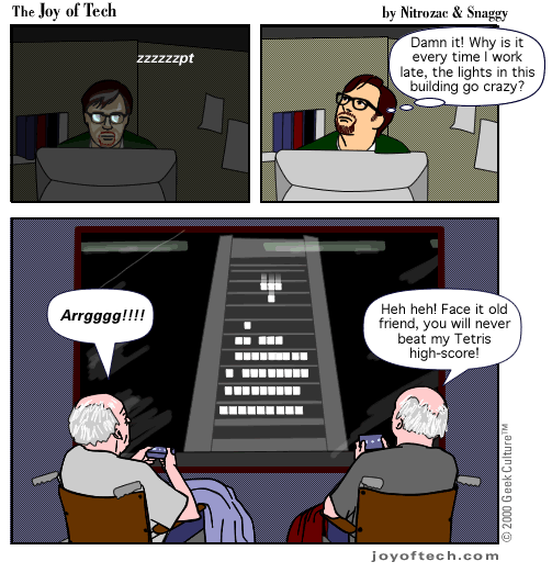 Welcome to the Joy of Tech... illustrated by Nitrozac and written by Nitrozac and Snaggy. It's a little bit simpler in style than our other comic After Y2K, and a little more topical. We hope you enJoy!