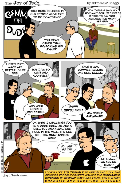 HomeGeek Culture... Geek Love, Geek Files, Mind Numbing Magazine, all kinds of geeky stuff!The Webstore! Get some cool stuff, and support your fave comic creators!e-Cards!The ForumsThe Joy of Tech! ...your quick fix of comic fun!After Y2K!webcam!