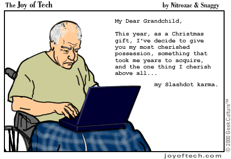 Welcome to the Joy of Tech... illustrated by Nitrozac and written by Nitrozac and Snaggy. It's a little bit simpler in style than our other comic After Y2K, and a little more topical. We hope you enJoy!