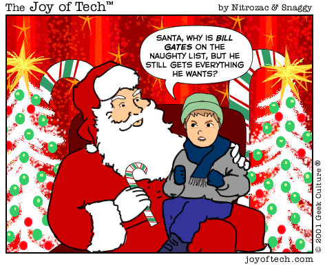 • Santa, with a twinkle in his eye, pulled down his fake beard to reveal that he was actually Bill Gates.
