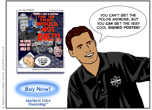 HomeGeek Culture... Geek Love, Geek Files, Mind Numbing Magazine, all kinds of geeky stuff!The Webstore! Get some cool stuff, and support your fave comic creators!e-Cards!The ForumsThe Joy of Tech! ...your quick fix of comic fun!After Y2K!webcam!