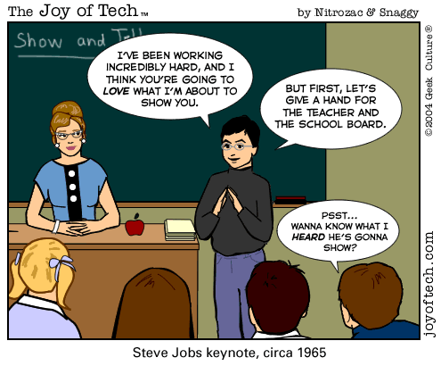 So what do you think Tot Jobs is going to reveal at Show and Tell? |